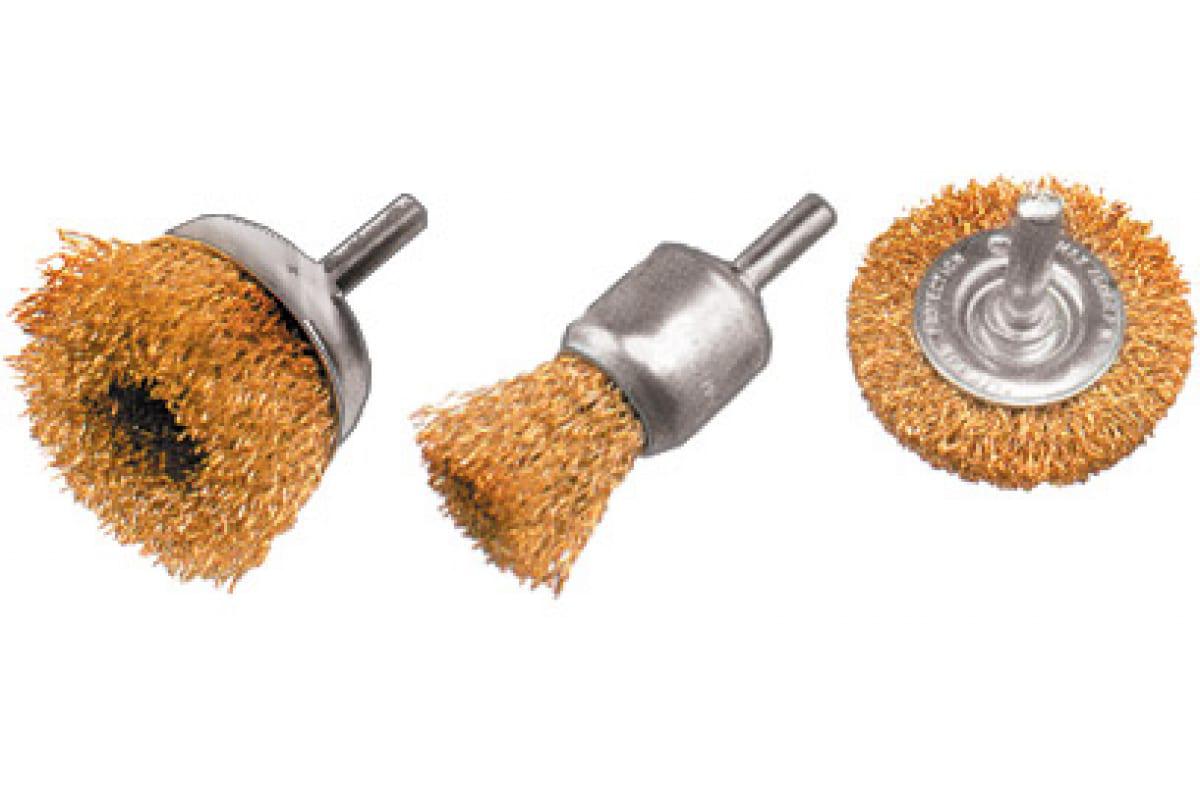 Корщетки со штифтом, набор 3 шт. (колесо 50 мм / чашка 50 мм / венчик 25 мм) 38563