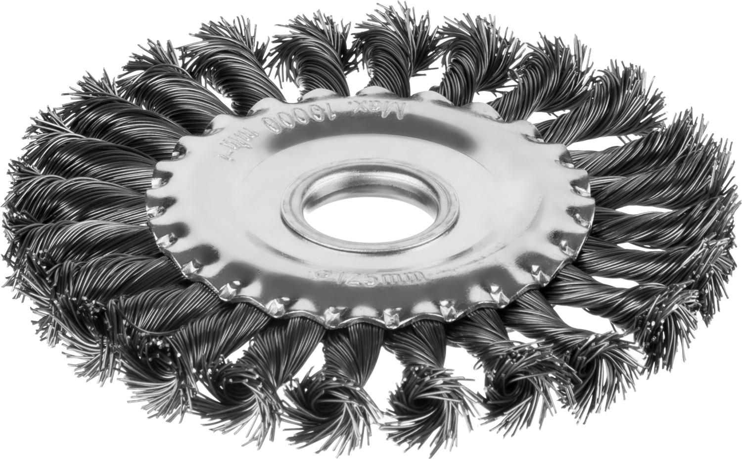 Щетка 125ммх22мм дисковая для УШМ, витая стальная проволока 0,5мм MIRAX 35140-125