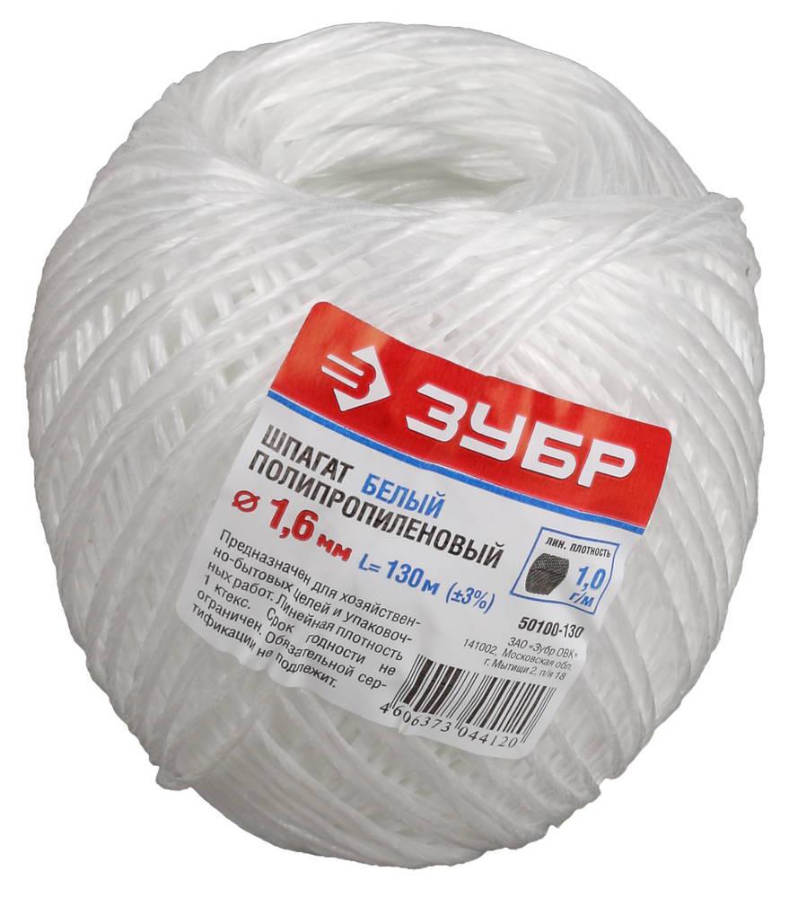 Шпагат 130 м,d=1,6 мм, 22 кгс, 1,0 ктекс, белый, полипропиленовый, ЗУБР 50100-130